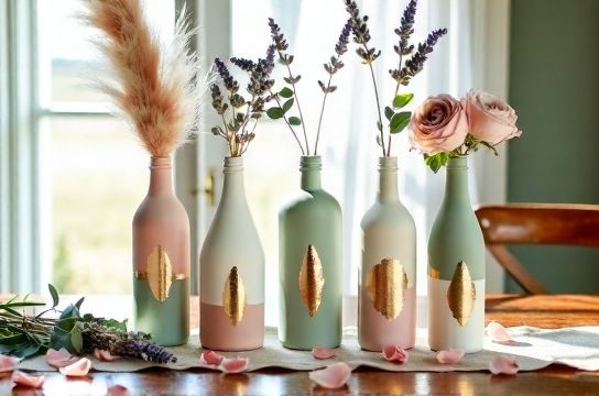 Painted Glass Bottle Centerpieces for Special Occasion Tables